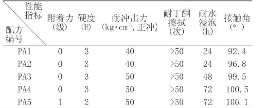 在制得不同配方的涂料之后(PA1-PA5),我們進一步制備了相應(yīng)的水性氟丙樹脂涂料涂膜,其性能指標(biāo)見表3。