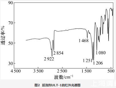 2)利用紅外光譜、質(zhì)譜進(jìn)行新型起泡劑ULT-1分子結(jié)構(gòu)表征,起泡劑ULT-1分子中具有硫酸酯鍵、醚鍵、碳?xì)滏I等官能團(tuán),與分子結(jié)構(gòu)設(shè)計一致。