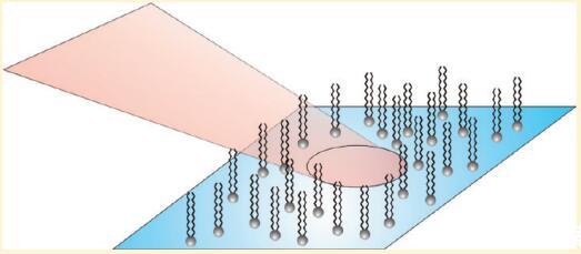 通過使用布魯斯特角顯微鏡(BAM),我們將表明,盡管表面活性劑在SFG中是不可見的,但它確實以非常低的密度存在于表面。BAM非常適合于在水面上顯示密度相對較高的表面活性劑區域。在布魯斯特角(~對于使用HeNe激光器的水,p偏振光的反射消失。然而,如果表面存在表面活性劑或脂質結構域,則可以看到它們,因為它們確實在布儒斯特角反射一些光。