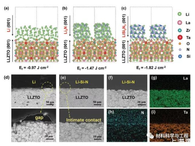 2)降低了Li|石榴石的界面形成能,使其具有良好的化學接觸。用1wt%Si3N4降低表面張力起主導作用。