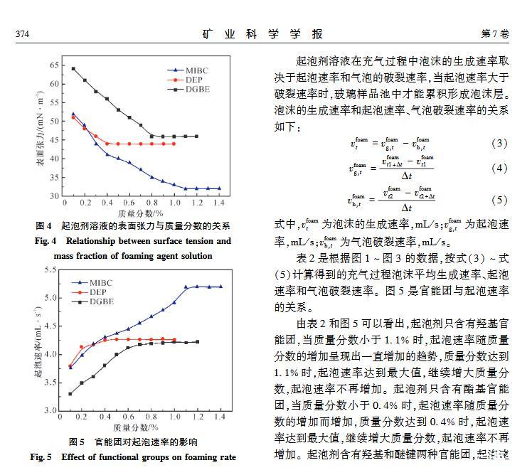 官能團對起泡性能和泡沫穩定性影響的研究
