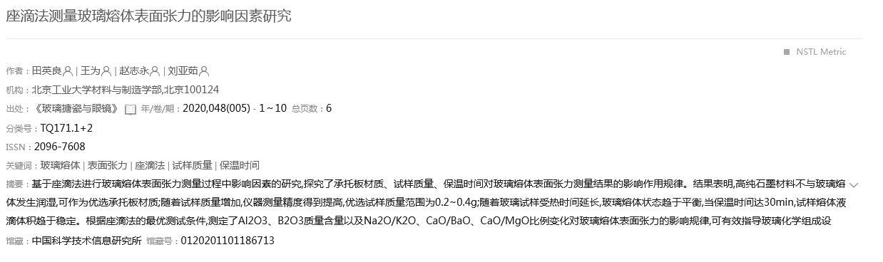 座滴法測量玻璃熔體表面張力的影響因素研究