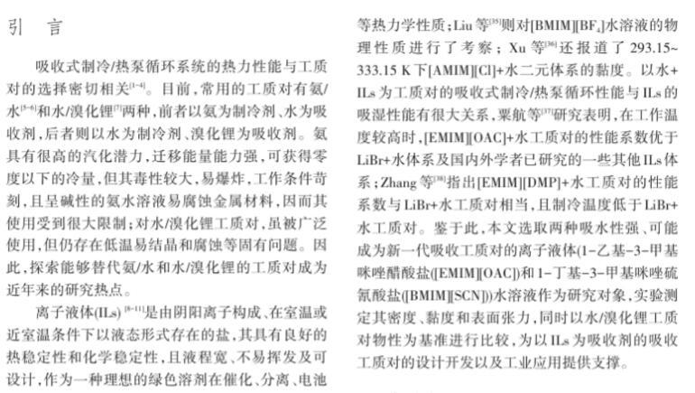 溴化鋰及離子液體水溶液密度、黏度和表面張力測定與計(jì)算