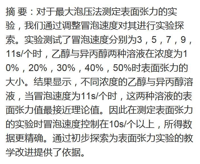 表面張力測定實驗的改進(jìn)——冒泡速度對其影響的初探